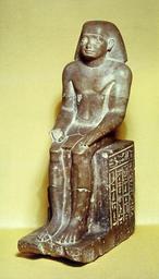 | Keywords: Egyptian - Itj-ibj - Walters 22142 - Three Quarter.jpg Discovered in the ancient necropolis or burial ground in Asyut in 1913 the statue is inscribed on either side of the block-like seat with the offering texts for Itj-ibj a minor official represented with a shoulder-length head covering and wearing a shendyt While early 12th Dynasty in style this impressive seated statue shows Itj-ibj in a classic pose copied from Old Kingdom sculpture hands balanced on his thighs the left flat and the right clenched in a fist holding a folded cloth Traces of red paint with white spots remain on the fleshy areas of the sculpture and it has been suggested that the exposed parts of the body were painted to make the limestone resemble red granite a more costly stone between 1976 1911 BC Middle Kingdom limestone with paint cm 66 20 38 3 accession number 22 142 26545 Joseph Brummer New York Henry Walters city Baltimore Walters Art Gallery 1931 by bequest Acquired by Henry Walters 1926 Translation An offering which the king gives to Anubis Lord of Re-qereret who is in the embalmment place Lord of the cemetary that he may give a good burial by the Treasurer Djefay-hapy to Iti-ibi born of My An offering which the king gives to Osiris Lord of Busiris the Great god Lord of Abydos on all his places that he may give mortuary offerings of bread beer oxen and fowl clothing alabaster to the Revered Itj-ibj place of origin Asyut Egypt Walters Art Museum license Ancient Egyptian statues in the Walters Art Museum Statues of the 12th dynasty of Egypt Ancient Egyptian art from Asyut Ancient Egyptian art made from alabaster |