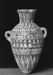 | Keywords: Egyptian - Jar - Walters 481382.jpg This jar was intended as a funerary gift and belonged to The one venerated before Anubis who is within the place of embalming the Osiris the scribe Amenhotep By the New Kingdom the deceased were routinely identified with the god Osiris and was called an Osiris At this time terracotta vessels were sometimes painted to imitate luxury goods made of glass or stone ca 1390 1292 BC New Kingdom terracotta with paint cm 20 5 12 8 9 8 accession number 48 1382 10705 Dikran Kelekian Paris and New York Henry Walters Baltimore by purchase Walters Art Museum Henry Walters Acquired by Henry Walters Translation One revered by Anubis who is in the place of embalming Osiris the scribe Amenhotep place of origin Thebes in present-day Egypt Walters Art Museum license Ancient Egyptian pottery in the Walters Art Museum Media contributed by the Walters Art Museum needs category review |