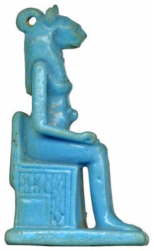 Keywords: Egyptian - Lioness Headed Goddess - Walters 481546 - Right.jpg The lustrous blue glaze on this example of Egyptian faience a ceramic-like glazed material imitated the tones of turquoise which was imported from the Sinai Peninsula Egyptian faience was inexpensive to produce but the results were so beautiful that it was used for even very prestigious objects The lioness-headed goddess probably Wadjet is seated on a throne her left hand holding a papyrus-scepter in front of her body A loop which clarifies the function of the small statuette as a pendant is behind her back between 664 525 BC Late Period; Saite Egyptian faience with blue glaze cm 5 29 1 42 3 19 accession number 48 1546 11753 Henry Walters Baltimore 1930 mode of acquisition unknown Walters Art Museum Henry Walters Acquired by Henry Walters 1930 place of origin Egypt Walters Art Museum license Ancient Egyptian amulets in the Walters Art Museum Ancient Egyptian faience in the Walters Art Museum Media contributed by the Walters Art Museum needs category review |