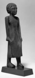 | Keywords: Egyptian - Male Figure Standing - Walters 2225 - Three Quarter.jpg Ancient Egyptian men were generally represented in their tomb figures wearing a short or long shendyt Here the deceased is shown holding a corner of the shendyt with his right hand a gesture that became popular during the late Old Kingdom The statue is made of soft wood and has lost all of its paint ca 2250 BC late Old Kingdom wood H above base cm 28 7 accession number 22 25 33608 Said Bey Khashaba Cairo Museum date of acquisition unknown by excavation Dikran Kelekian New York and Paris date and mode of acquisition unknown Henry Walters city Baltimore Walters Art Museum Henry Walters Acquired by Henry Walters 1924 Carved for Immortality The Walters Art Museum Baltimore 2004-2005 place of origin Meir Egypt Walters Art Museum license Ancient Egyptian statues in the Walters Art Museum Statues of the Egyptian Old Kingdom |