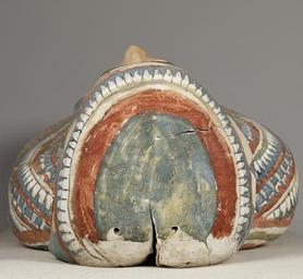 | Keywords: Egyptian - Mummy and Painted Cartonnage of an Unknown Woman - Walters 791 - Detail B.jpg Mummification preserved mortal remains in order to house the Ka or life force of the individual as it needed to return to the body to find sustenance The human-shaped covering called cartonnage is composed of layers of linen and plaster Its painted decoration includes the floral wreath on the wig a broad collar and a winged scarab beetle Five additional registers of decoration show the protective four sons of Horus the sacred boat of the funerary-deity Sokar a mummy of Osiris on a funerary bed a divine falcon god and a short hieroglyphic text with an offering formula See the additional media for a facial reconstruction of the mummy courtesy of Michael Brassell as well as a color reconstruction of the cartonnage ca 850 750 BC Third Intermediate mummy in cartonnage with paint cm 167 46 27 5 accession number 79 1 492 Excavated at Deir el-Bahri by the Metropolitan Museum of Art's Egyptian Expedition Winter of 1930-1931 by Ambrose Lansing Metropolitan Museum of Art New York ca 1930-1931 Walters Art Museum 1941 by exchange Museum acquisition by exchange with the Metropolitan Museum of Art 1941 Translation The king gives an offering to Osiris In Search of Ancient Treasure 40 Years of Collecting The Walters Art Gallery Baltimore 1978 Highlights from the Collection The Walters Art Gallery Baltimore 1998-2001 place of origin Deir el-Bahri present-day Western Thebes Egypt Walters Art Museum license Ancient Egyptian sarcophagi in the Walters Art Museum Sarcophagi of the Egyptian third intermediate period Media contributed by the Walters Art Museum needs category review Egyptian mummies in the Walters Art Museum Ancient Egyptian art from Deir el-Bahari |