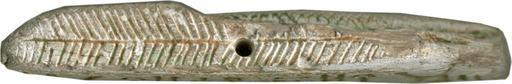 | Keywords: Egyptian - Pectoral with Sacred Symbol and Representation of Atum and Re-Harakhte on the Other Side - Walters 4284 - Bottom.jpg The rectangular pectoral which has two holes for suspension On one side of the pectoral is the solar boat depicted Inside of the boat is the winged scarab as well as the moon disk and crescent combination both are flanked by two standing baboons with adoration gestures On the other side of the plaque there are three image fields On the far left is the god Atum in the center is the solar falcon and on the far right is the god Re-Harakhte Atum is named by the inscription as the Lord of the Sky and the solar falcon as Re-Harakhte Great God and Living Lord of Heliopolis and the falcon-headed god just as Re-Harakhte The sides of the pectoral are decorated with a grid pattern The pectoral was probably produced during the Ramesside Period or the early Third Intermediate Period between 1292 945 BC New Kingdom-early Third Intermediate steatite with remains of green glaze cm 3 71 5 39 0 55 accession number 42 84 28352 Dikran Kelekian New York and Paris date and mode of acquisition unknown Henry Walters city Baltimore Walters Art Museum Henry Walters Acquired by Henry Walters 1925 place of origin Egypt Walters Art Museum license Ancient Egyptian pectorals in the Walters Art Museum Media contributed by the Walters Art Museum needs category review |