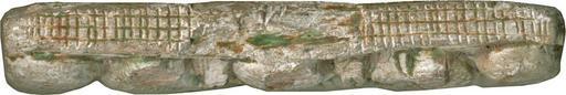 | Keywords: Egyptian - Pectoral with Sacred Symbol and Representation of Atum and Re-Harakhte on the Other Side - Walters 4284 - Top.jpg The rectangular pectoral which has two holes for suspension On one side of the pectoral is the solar boat depicted Inside of the boat is the winged scarab as well as the moon disk and crescent combination both are flanked by two standing baboons with adoration gestures On the other side of the plaque there are three image fields On the far left is the god Atum in the center is the solar falcon and on the far right is the god Re-Harakhte Atum is named by the inscription as the Lord of the Sky and the solar falcon as Re-Harakhte Great God and Living Lord of Heliopolis and the falcon-headed god just as Re-Harakhte The sides of the pectoral are decorated with a grid pattern The pectoral was probably produced during the Ramesside Period or the early Third Intermediate Period between 1292 945 BC New Kingdom-early Third Intermediate steatite with remains of green glaze cm 3 71 5 39 0 55 accession number 42 84 28352 Dikran Kelekian New York and Paris date and mode of acquisition unknown Henry Walters city Baltimore Walters Art Museum Henry Walters Acquired by Henry Walters 1925 place of origin Egypt Walters Art Museum license Ancient Egyptian pectorals in the Walters Art Museum Media contributed by the Walters Art Museum needs category review |