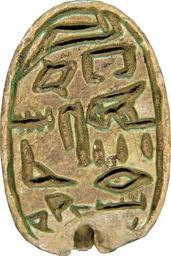 | Keywords: Egyptian - Private Name Seal of Reni-seneb - Walters 4240 - Bottom.jpg This steatite scarab is inscribed on the flat underside with vertically arranged column writing that name an individual and make a statement of social status The top is carved with a detailed design in deep lines with regular flow The piece is simply made and the workmanship is slightly rough The scarab functioned as a private name seal and user individualized amulet and was originally mounted or threaded The amulet should guarantee constancy of individual existence and social status The name Reni-seneb was very popular in the Middle Kingdom between 1794 1648 BC late Middle Kingdom beige steatite with green-blue glaze cm 0 9 1 6 2 4 accession number 42 40 26216 Henry Walters Baltimore date and mode of acquisition unknown Walters Art Museum Henry Walters Acquired by Henry Walters Transcription Overseer of the office of calculations and distributions Reni- seneb the justified one The flower bunch for the phrase the justified one is reversed Secret Signs Egyptian Writing The Walters Art Museum Baltimore 2003-2004 place of origin Egypt Walters Art Museum license Ancient Egyptian scarabs in the Walters Art Museum Hieroglyphs on scarabs Tongue animal hieroglyph Pustule hieroglyph House pr hieroglyph Knife sharpener hieroglyph |