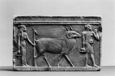 | Keywords: Egyptian - Rectangular Tablet with Isis, Horus and Ram - Walters 22324.jpg This carved limestone tablet is in low relief It depicts to the right Isis with a staff and symbol of life Also depicted are a ram and Horus with a bird in his right hand and his left to his mouth At the top is a tongue pattern 306-30 BC Greco-Roman limestone red paint gilt H 6 9/16 x L 10 1/16 x D 1 5/8 in 16 6 x 25 5 x 4 2 cm accession number 22 324 29471 Khawam date and mode of acqusition unknown Henry Walters Baltimore 1930 mode of acquisition unknown Walters Art Museum Henry Walters Acquired by Henry Walters 1930 place of origin Egypt Walters Art Museum license Ancient Egyptian reliefs in the Walters Art Museum Ancient Greek art in the Walters Art Museum Media contributed by the Walters Art Museum needs category review Isis in Egyptian art |