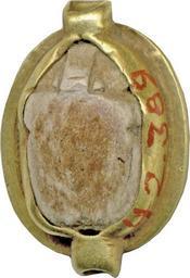 | Keywords: Egyptian - Ring Bezel - Walters 42389 - Back.jpg A scarab carved of light brown steatite with a thick gold rim around the bottom edge A lip of gold pressed around the scarab to hold it in place is drawn out to form hoop-sockets Carved into the back of the scarab is a beetle with outstretched legs under a disk ca 1648 1539 BC Second Intermediate; Hyksos steatite with glaze gold cm 0 6 1 3 1 9 accession number 42 389 18790 Henry Walters Baltimore date and mode of acquisition unknown Walters Art Museum Henry Walters Acquired by Henry Walters Kheper-Ra Jewelry - Ancient to Modern The Walters Art Gallery Baltimore 1979-1980 place of origin Egypt Walters Art Museum license Ancient Egyptian scarabs in the Walters Art Museum Ancient Egyptian finger rings in the Walters Art Museum Hyksos scarabs Khepri |