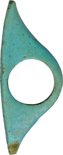 Keywords: Egyptian - Ring with Cartouche-Shaped Bezel - Walters 42417 - Left.jpg This example of turquoise-colored faience is chipped and has incrustations in the deeply cut crisp hieroglyphs which read May your house flourish may your lifetime be jubilant under the gifts of Amun of Karnak and a high old age between 1070 940 BC Third Intermediate faience with blue glaze Cartouche Bezel L 2 5/16 x W 2 7/16 x D 1/2 in 5 93 x 6 23 x 1 28 cm ; Inner Diam cm 1 23 accession number 42 417 10184 Dikran Kelekian New York and Paris date and mode of acquisition unknown obtained in Luxor Henry Walters city Baltimore Walters Art Museum Henry Walters Acquired by Henry Walters 1913 Jewelry - Ancient to Modern The Walters Art Gallery Baltimore 1979-1980 Faience The Colors of the Heavens The Walters Art Museum Baltimore; The Walters Art Museum Baltimore 2003-2004 Secret Signs Egyptian Writing The Walters Art Museum Baltimore 2003-2004 place of origin Egypt Walters Art Museum license Ancient Egyptian finger rings in the Walters Art Museum Ring with Cartouche-Shaped Bezel |
