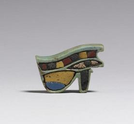 | Keywords: Egyptian - Sacred Eye Udjat - Walters 47265.jpg The Udjat-eye also called Horus-eye was one of the most popular amulets in Ancient Egypt The eye symbolizes legitimate kingship it secures the life of the sun-god and also of other deities as well as human beings In the Horus myth the eye was stolen from its legitimate owner Horus by Seth the god of the wild powerful and untamed nature This violent act caused disorder in the universe and the eye had to be brought back to reestablish order and to heal in its place with Horus As an amulet the Udjat-eye should secure life in this world and in the afterlife protect health and promote healing The standardized form of the amulet combines the human eye with the cheek marking of a falcon and the tear marking of a cheetah Besides the right Udjat-eye there is also a left version While the right eye is connected with the sun the left eye represents the moon Most of the Udjat-eye amulets have a green-blue or red color; in this case different colors are combined to reflect the polychromy of life and nature ca 945 525 BC Third Intermediate-Late Period polychrome faience glass cm 2 33 3 63 0 63 accession number 47 265 9339 Henry Walters city Baltimore Walters Art Museum Henry Walters Acquired by Henry Walters 1929 Jewelry - Ancient to Modern The Walters Art Gallery Baltimore 1979-1980 3000 Years of Glass Treasures from The Walters Art Gallery The Walters Art Gallery Baltimore 1982 place of origin Egypt Walters Art Museum license Ancient Egyptian amulets in the Walters Art Museum Eye of Horus amulet |