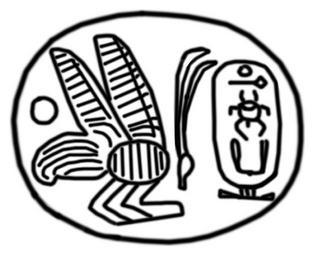 | Keywords: Egyptian - Scarab from Egyptian-Style Necklace - Walters 57153013 - Impression.jpg The ancient Egyptians believed that the dung beetle the Scarabaeus sacer was one of the manifestations of the sun god Representations of these beetles were used as amulets and for ritual or administrative purposes This scarab has a bottom inscription with a vertical cartouche containing the name of King Thutmose I The royal cartouche is combined with a large bee and a very small sun disc; an oval line frames the whole inscription The highest point of the back is the elytron wing cases Double lines separate pronotum dorsal plate of the protorax and elytron as well as the wing cases The incised lines arge thick and the line flow regular The semicircular head is flanked by quarter-spherical eyes which are separated from the head with double lines The trapezoidal side plates have outer borderlines and a large clypeus front plate is marked The sides show deeply carved extremities in natural form The round-oval base is symmetrical The scarab is longitudinally pierced was originally mounted or threaded and used as an amulet It should secure royal authority cartouche and divine solar kingship bee for this ruler and provide a private owner with the royal patronage of the current ruler The combination of a large bee with a small sun disk behind its body is rare The round-oval forms of the scarab as well as the shape of the bee with very long curved feelers are typical for the early 18th Dynasty between 1504 1492 BC New Kingdom faience with green-blue glaze cm 1 5 1 2 8 accession number 57 1530 13 80010 Henry Walters Baltimore 1903 mode of acquisition unknown Walters Art Museum Henry Walters Acquired by Henry Walters 1903 Translation Aa-kheper-ka-Re / Solar King Jewelry - Ancient to Modern The Walters Art Gallery Baltimore 1979-1980 place of origin Egypt <gallery> File Egyptian - Scarab from Egyptian-Style Necklace - Walters 57153013 - Bottom jpg </gallery> Walters Art Museum license 2D Ancient Egyptian scarabs in the Walters Art Museum Bee hieroglyph Hieroglyphs on scarabs Thutmosis I |