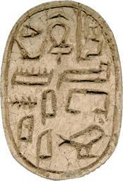 | Keywords: Egyptian - Scarab of Imeni - Walters 4221 - Bottom (2).jpg The ancient Egyptians believed that the dung beetle the Scarabaeus sacer was one of the manifestations of the sun god Representations of these beetles were used as amulets and for ritual or administrative purposes The bottom this scarab functions as a private name seal and contains the titles and name of a person called Imeni The text displays two not very clear defined columns of left reading hieroglyphic inscription without column dividers; an oval line frames the inscription The hieroglyphs of the bottom fill the whole text field but with some space in between; the layout is not very well balanced and some of the signs collide with the borderline The shape of the signs is simple and then has the typical Middle Kingdom form The highest point of the back is the partition between pronotum dorsal plate of the prothorax and elytron wing cases which is also defined by two side-notches and a deeply incised partition line A triple division line between the wing cases and a deep borderline which meet slightly asymmetrically at the rear are also visible The rectangular head is flanked by triangular eyes; the side plates are trapezoidal with curved outer edges and clypeus has a deep central base notch The proportions of the top are slightly unbalanced and the head section short in comparison to pronotum and elytron The raised extremities have natural form and vertical hatch lines on the fore- and hindlegs for the tibial teeth and pilosity hair ; the background between the legs is hollowed out The base has a symmetrical long-oval shape The scarab is longitudinally pierced was originally mounted or threaded and functioned as a private name seal and user Imeni individualized amulet which should guarantee constancy of individual existence and social status Imeni was a very popular name in the Middle Kingdom and Detlef Franke alone identified twenty-one different individuals with this name It is possible that it was the same Imeni who left an inscription with his name and the titles on the Sinai Peninsula in the year 42 of the reign of king Amenemhet III ca 1882 1798 BC Middle Kingdom light beige steatite cm 1 06 1 7 2 5 accession number 42 21 18240 Henry Walters Baltimore 1911 mode of acquisition unknown Walters Art Museum Henry Walters Acquired by Henry Walters 1911 Translation The seal-bearer of the King of Lower Egypt chief steward of the distribution of goods and orders Imeni Secret Signs Egyptian Writing The Walters Art Museum Baltimore 2003-2004 place of origin Egypt <gallery> File Egyptian - Scarab of Imeni - Walters 4221 - Bottom jpg </gallery> Walters Art Museum license Ancient Egyptian scarabs in the Walters Art Museum Seal hieroglyph Media contributed by the Walters Art Museum needs category review Ancient Egyptian high stewards |
