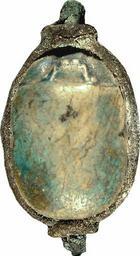 | Keywords: Egyptian - Scarab Ring - Walters 542463 - Back.jpg This ring a less expensive version of Walters 57 1957 is composed of a glazed steatite scarab set in a wide bronze band It is attached to a hoop which tapers into a wire small enough to go through the perforation of the scarab Decorative hieroglyphs are carved into the flat face of the back of the scarab Above is the red crown flanked by protection symbols below is a djed pillar of Osiris flanked by signs in the shape of a basket ca 1794 1539 BC late Middle Kingdom-Second Intermediate; MB IIB light beige-brown steatite with blue-green glaze and bronze setting cm 0 9 1 6 2 5 Other cm 3 2 Other cm 3 7 accession number 54 2463 2152 Robert Garett Collection Children of Robert Garrett Baltimore date and mode of acquisition unknown Walters Art Museum Gift of the children of Robert Garrett 1964 Inscription The upper part depicts Lower Egyptian crown on nb-basket kingship and magical protection flanked by s3-signs protection the lower part a dd-pillar stability flanked by nfr-signs perfection The hieroglyphic signs have no syntactical context but the combination of signs conveys special magic protection and long-lasting perfection In Search of Ancient Treasure 40 Years of Collecting The Walters Art Gallery Baltimore 1978 Jewelry - Ancient to Modern The Walters Art Gallery Baltimore 1979-1980 place of origin Egypt Walters Art Museum license Ancient Egyptian scarabs in the Walters Art Museum Ancient Egyptian finger rings in the Walters Art Museum |