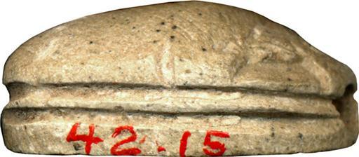 | Keywords: Egyptian - Scarab of Sheshi - Walters 4215 - Right.jpg The ancient Egyptians believed that the dung beetle the Scarabaeus sacer was one of the manifestations of the sun god Representations of these beetles were used as amulets and for ritual or administrative purposes This scarab is a typical example of the Second Intermediate Period The highest point of the back is the pronotum dorsal plate of the protorax Two short side-notches at shoulder height define the partition between pronotum and elytron wing cases The prontum is somewhat asymmetrical and the notches which differ in shape and depth are not aligned The head sections consists of a trapezoidal head rectangular eyes trapezoidal side plates with curved outer edges and a clypeus front plate with central base notch The sides of the scarab show no extremities but two deeply incised circular lines which define the partition between the body and the oval shaped base The bottom inscription contains the name and title of the King Sheshi as well as a formula wishing him life The hieroglyphs are deeply carved and somewhat clumsy The layout is somewhat unbalanced and the top and bottom signs collide with the borderline The scarab is longitudinally pierced was originally mounted or threaded and used as an amulet It should secure the existence and divine monarchy for this king and provide its private owner with his royal patronage There are many scarabs with the name of king Sheshi e g Baltimore Walters Art Museum 42 17 and 42 26 which were found in Egypt Nubia and Palestine Nevertheless there are no other monuments or historical records with his name It is possible that the throne name of Sheshi was Maat-ib-Re and scarabs with this name were similar popular and widespread The identification of Sheshi with a Hyksos rulers or one of the Hyksos vassals is likely but not positive Furthermore some scholars considered interpreting the name as a writing variant of the name of the well-known Hyksos ruler Apepi between 1648 1539 BC Second Intermediate; Hyksos light beige steatite originally glazed cm 0 7 1 2 1 6 accession number 42 15 14091 Prof Newberry Henry Walters Baltimore 1911 by purchase Walters Art Museum Henry Walters Acquired by Henry Walters 1911 Translation Birth name of King Sheshi with solar filiations Son of Re Sheshi may he live forever place of origin Palestine Walters Art Museum license Ancient Egyptian scarabs in the Walters Art Museum Sheshi Works of the 15th dynasty of Egypt Hyksos scarabs Scarabs with Wish Formula |