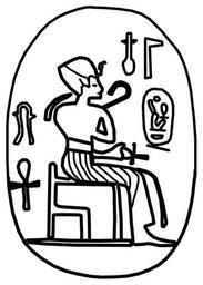 | Keywords: Egyptian - Scarab - Walters 42376 - Impression.jpg The ancient Egyptians believed that the dung beetle the Scarabaeus sacer was one of the manifestations of the sun god Representations of these beetles were used as amulets and for ritual or administrative purposes This scarab has a bottom design that displays King Amenhotep seated on his throne He is dressed in a long pleated shendyt wears the so-called Blue crown with Uraeus-serpent and crown sash The king holds with his left hand the crook in front of his chest and with his right an ankh-sign meaning life The block throne has a small back In front of him is a column with a left reading inscription containing his throne name and title and behind him the hieroglyphs for protection and life The layout is well organized but it is notable that the royal figure does not fill the whole space and that the Uraeus on the forehead of the king is unusually large The highest point of the scarab's back is the pronotum dorsal plate of the prothorax Pronotum and elytron wing cases have deeply incised fine borderlines single separation lines V-shaped marks for the humeral callosities shoulder thickenings and small side-depressions The partition lines between pronotum and elytron meet V-shaped The rectangular head is flanked by triangular eyes The trapezoidal side plates have curved outer edges and borderlines and the clypeus front plate has four frontal serrations and two central base notches The raised slender extremities have natural form; the background between the legs is deeply hollowed out The low oval base is symmetrical The scarab is longitudinally pierced was originally mounted or threaded and functioned as an amulet It secures the existence life protection divinity title Perfect god and royal authority cartouche seated king with scepter for the king and provides a private owner with his patronage and protection between 1388 1351 BC New Kingdom steatite with green glaze and residue of white underglaze cm 1 9 3 3 4 7 accession number 42 376 3211 Henry Walters Baltimore 1930 mode of acquisition unknown Walters Art Museum Henry Walters Acquired by Henry Walters 1930 Translation Throne name of King Amenhotep III with cartouche and combined with divinity title The Perfect God Neb-Maat-Re / Protection and life place of origin Egypt Walters Art Museum license 2D Ancient Egyptian scarabs in the Walters Art Museum Hieroglyphs on scarabs Media contributed by the Walters Art Museum needs category review |