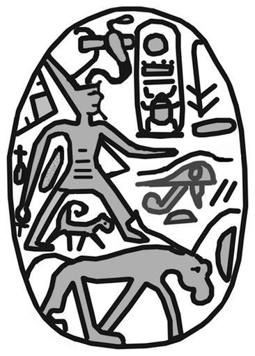 Keywords: Egyptian - Scarab with the Cartouche of Thutmosis III (1479-1425 BC) - Walters 4220 - Bottom.jpg This steatite scarab is inscribed with the throne name of Thutmosis III 1479-1425 BC in sunk relief technique on the flat underside The top of the scarab is high and has a simple carved design The workmanship is slightly rough and some of the details are out of shape The piece functioned as an individualized amulet and was originally mounted or threaded The amulet should ensure royal protection and support its owner and make him as successful in warding against dangers as the king The scarab was produced after the death of Thutmosis III who was most probably understood as a protective god and successful model of divine kingship The combination of different royal manifestations with protective renewal and good luck elements intends to assure the all-inclusive magic power of the amulet The body and posture of the animal figure in the lower round of the scarab is similar to a donkey but the long horns which are too long to be ears make it more likely that it represents the royal bull Images of bulls on scarabs are mostly part of a motif showing the animal trampling on an enemy between 1292 1069 BC New Kingdom light beige steatite with blue-green glaze cm 1 2 1 9 2 7 accession number 42 20 26540 Henry Walters Baltimore 1911 mode of acquisition unknown Walters Art Museum Henry Walters Acquired by Henry Walters 1911 Translation Throne name of King Thutmose III in a cartouche combined with state ruler title King of the Two Lands Men-kheper-Re place of origin Egypt Walters Art Museum license 2D Ancient Egyptian scarabs in the Walters Art Museum Hieroglyphs on scarabs Cartouches of Thutmosis III Scarabs of Thutmosis III Panther hieroglyph |