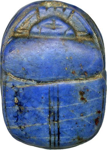Keywords: Egyptian - Scarab with Sprial Scroll Pattern - Walters 42390 - Back.jpg This lapis lazuli scarab has a flat underside with a vertically arranged design of spiral scrolls The scrolls are arranged below each other and both face with their open parts to the left The design of the back of the scarab is detailed with fine incised lines regular line flow and almost balanced proportions The workmanship of the scarab is slightly rough and the piece is simply made The scarab functioned as an amulet with a regenerative connotation and was originally mounted or threaded The bottom design was executed after the repair of the scarab The height of the scarab makes it likely that it was originally created as inlay for a finger ring Later the scarab was reused and the second latitudinal hole was drilled between 1550 1450 BC New Kingdom blue lapis lazuli cm 0 8 1 1 4 accession number 42 390 25816 Henry Walters Baltimore date and mode of acquisition unknown Walters Art Museum Henry Walters Acquired by Henry Walters Daily Magic in Ancient Egypt The Walters Art Museum Baltimore 2006-2007 place of origin Egypt Walters Art Museum license Ancient Egyptian scarabs in the Walters Art Museum Media contributed by the Walters Art Museum needs category review |