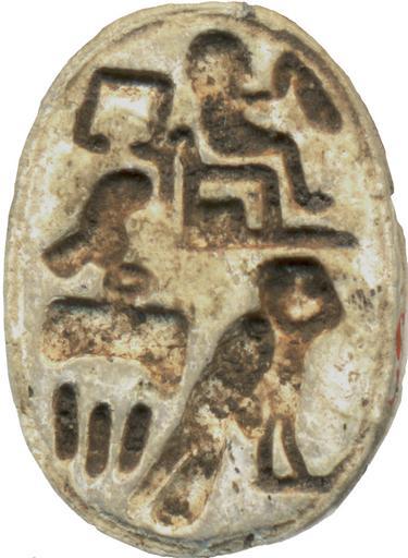 Keywords: Egyptian - Scarab with Wish Formula - Walters 428 - Bottom.jpg This steatite scarab is inscribed on the flat underside in sunk relief The vertically arranged column writing is a request to ensure the social status of a member of an elite group The design of the back of the scarab is very detailed with deeply incised lines and slightly irregular line flow The piece is simply made and its workmanship is slightly rough This scarab functioned as a status specific amulet with a blessing for a member of the elite The amulet should express/secure that the owner is notable prestigious and well equipped in the royal court/palace The piece would have originally been mounted or threaded The term Golden Horus as the name of a god does not appear before the Ptolemaic period and it is very unlikely that this scarab dates from that period or that this deity would have been mentioned so early ca 1070 736 BC Third Intermediate steatite light beige with glaze originally blue or green cm 0 7 1 1 1 5 accession number 42 8 28819 Henry Walters Baltimore 1911 mode of acquisition unknown Walters Art Museum Henry Walters Acquired by Henry Walters 1911 Translation May the noble be in the palace of the Golden Horus place of origin Egypt Walters Art Museum license Ancient Egyptian scarabs in the Walters Art Museum Owl m hieroglyph House pr hieroglyph Noble with flail hieroglyph Horus of gold hieroglyph Scarabs with Wish Formula |