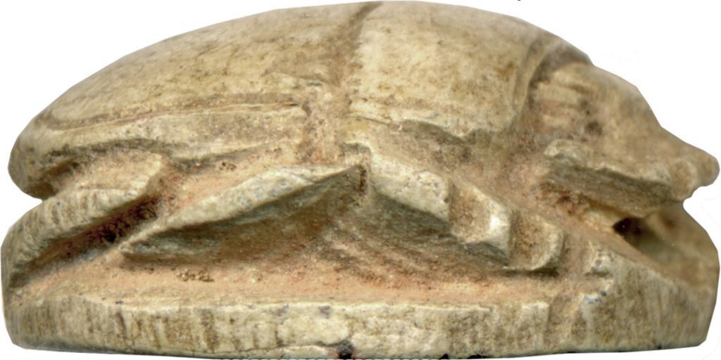 | Keywords: Egyptian - Scarab with Wish Formula - Walters 429 - Right.jpg The ancient Egyptians believed that the dung beetle the Scarabaeus sacer was one of the manifestations of the sun god Representations of these beetles were used as amulets and for ritual or administrative purposes This scarab has a bottom inscription which is framed by an oval line It is contains a wish formula which focuses on the young recruits in the army group under the name of the god Seth The Seth-hieroglyph is the most dominant sign in the whole inscription The hieroglyphs are executed in sunk relief; the layout is not very well organized and some hieroglyphs collide with the borderline which is inconsistent and overlaps twice in the upper part The Seth-animal has an unusual elongated shape and a very long snout; the ears are not Seth-like but canine Nevertheless the typical tail identifies the animal as Seth The highest point of the flat back is the partition between pronotum dorsal plate of the prothorax and elytron wingcases Pronotum and elytron have incised borderlines single separation lines and V-shaped marks for humeral callosities shoulder thickenings The semicircular head is flanked by quarter oval eyes; the side plates are irregularly trapezoidal and clypeus has four frontal serrations The proportions of the top are well balanced The raised somewhat stocky extremities have natural form and three vertical hatch notches for the tibial teeth The background between the legs is hollowed out The shape of the base is symmetrically round-oval The scarab is longitudinally pierced was originally mounted or threaded and served as an amulet with a special blessing for young soldiers The scarab should secure the support and protection of the powerful god Seth for the young recruits of the army It is also possible that the phrase was used as a name for a military group of recruits Seth and his powerful protection became popular during the Ramesside Period and it is understandable that especially the young recruits of the army needed his special protection ca 1186 736 BC late New Kingdom-Third Intermediate light beige steatite cm 0 8 1 2 1 6 accession number 42 9 23044 Henry Walters Baltimore 1911 mode of acquisition unknown Walters Art Museum Henry Walters Acquired by Henry Walters 1911 Translation May the recruits of Seth be satisfied place of origin Egypt Walters Art Museum license Ancient Egyptian scarabs in the Walters Art Museum Media contributed by the Walters Art Museum needs category review Scarabs with Wish Formula |