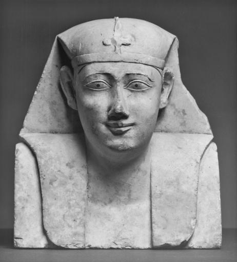 | Keywords: Egyptian - Sculptor Model for a Royal Bust - Walters 2254.jpg A limestone model bust of a royal male wearing the nemes headdress with a uraeus The uraeus serpent has been broken away As was typical for the period the uraeus had two coils one to each side and the tail extended back over the top of the rounded nemes Beneath the edge of the band of the nemes the natural hairline of the figure may be seen The eyes are naturally outlined and the brow delicately follows the contour of the eye The pupils and irises of the eyes are picked out in black paint The surface of the piece has been scratched and chipped in several places The face is fleshy and rather flat in profile The lips are pursed and smiling The back sides and base are flat planes and there are grid squares etched into the back and sides Where the lappets touch the shoulder they are creased in an unnaturally sharp way The lappets are flat with a curved outer edge and strictly vertical inner edge ca 200 150 BC Greco-Roman limestone cm 18 8 16 1 9 5 accession number 22 54 3028 Henry Walters city Baltimore Walters Art Museum Henry Walters Acquired by Henry Walters 1920 place of origin Sebennytos present-day Samannud Egypt Walters Art Museum license Ancient Egyptian reliefs in the Walters Art Museum Unknown pharaohs Works of Greco-Roman Egypt Sebennytos |