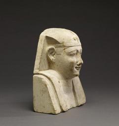 | Keywords: Egyptian - Sculptor Model for a Royal Bust - Walters 2254 - Three Quarter Right.jpg A limestone model bust of a royal male wearing the nemes headdress with a uraeus The uraeus serpent has been broken away As was typical for the period the uraeus had two coils one to each side and the tail extended back over the top of the rounded nemes Beneath the edge of the band of the nemes the natural hairline of the figure may be seen The eyes are naturally outlined and the brow delicately follows the contour of the eye The pupils and irises of the eyes are picked out in black paint The surface of the piece has been scratched and chipped in several places The face is fleshy and rather flat in profile The lips are pursed and smiling The back sides and base are flat planes and there are grid squares etched into the back and sides Where the lappets touch the shoulder they are creased in an unnaturally sharp way The lappets are flat with a curved outer edge and strictly vertical inner edge ca 200 150 BC Greco-Roman limestone cm 18 8 16 1 9 5 accession number 22 54 3028 Henry Walters city Baltimore Walters Art Museum Henry Walters Acquired by Henry Walters 1920 place of origin Egypt Walters Art Museum license Ancient Egyptian reliefs in the Walters Art Museum Unknown pharaohs Works of Greco-Roman Egypt Media contributed by the Walters Art Museum needs category review |