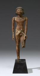 | Keywords: Egyptian - Standing Male Figure - Walters 2228.jpg This figure has been carved in the round and painted He has short hair plain black His arms are joined at the shoulders his right hand is open his left is clenched with a hole Hw has a white belt tied at the front There is a pin set into the front above the belt His left leg is broken at the knee his right foot is made separately and is gone There is a prong under his right heel inset into the base between 2119 1793 BC Middle Kingdom wood with red black and white paint H above base cm 14 7 accession number 22 28 25022 MacGregor date and mode of acquisition unknown Dikran Kelekian New York and Paris date and mode of acquisition unknown Henry Walters Baltimore 1923 mode of acquisition unknown Walters Art Museum Henry Walters Acquired by Henry Walters 1923 Label Old label 4707 H09 place of origin Egypt Walters Art Museum license Ancient Egyptian statues in the Walters Art Museum Statues of the Egyptian Middle Kingdom |