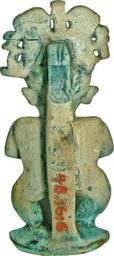| Keywords: Egyptian - Standing Pataikos - Walters 481616 - Back.jpg This dwarf-like protective deity was very popular in ancient Egypt; amulets in the shape of this god were particularly popular from the Third Intermediate period The Greek name Pataikos comes from a passage in the writings of Herodotus ca 5th century BC who used this term to describe a Phoenician protective dwarf-like image The Egyptian Pataikos is a special manifestation of the creator god Ptah and the dwarf-like appearance symbolizes his magical power This Pataikos is standing on crocodiles and has knives in his hands A large collar adorns his neck and upper chest The crown is quite unusual for Pataikos; it is an atef crown combination of the Upper Egyptian crown with flanking plumes flanked by sun-disk-crowned snakes A scarab usually on top of the head of Pataikos is instead placed in front of the lower center of the crown Wings are attached behind the shoulders of the god The back pillar is pierced to function as a loop for a pendant This was probably made during the Ptolemaic Period century 3 2 BC Greco-Roman Egyptian faience with blue-green glaze cm 6 1 2 3 1 5 accession number 48 1616 19584 Henry Walters Baltimore date and mode of acquisition unknown Walters Art Museum Henry Walters Acquired by Henry Walters Daily Magic in Ancient Egypt The Walters Art Museum Baltimore 2006-2007 place of origin Egypt Walters Art Museum license Ancient Egyptian amulets in the Walters Art Museum Ancient Egyptian faience in the Walters Art Museum Pataikos |