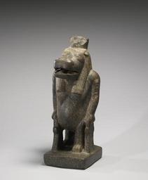 | Keywords: Egyptian - Statue of Taweret - Walters 22223 - Three Quarter Left.jpg Ancient Egyptians believed the goddess Taweret whose name translates as the Great One offered protection to women during pregnancy and childbirth She is represented as a hippopotamus with a swollen belly pendulous human breasts the limbs of a lion and the back and tail of a crocodile Taweret was a benevolent deity and was commonly depicted on amulets Underscoring her function as a protector she holds the hieroglyph sa meaning protection in each hand the cartouches on her shoulders were added at a later date and have so far escaped a definitive reading Although her cult gained great importance she had no temples of her own ca 180 100 BC Greco-Roman red granite cm 53 21 23 accession number 22 223 6873 Dr Eddé Alexandria Egypt Eddé Collection Sale Hôtel Drouot Paris May 31-June 2 1911 no 525 Henry Walters Baltimore date of acquisition unknown by purchase Walters Art Museum 1931 by bequest Acquired by Henry Walters place of origin Xoïs in present-day Egypt Walters Art Museum license Ancient Egyptian statues in the Walters Art Museum Statues of Taweret |