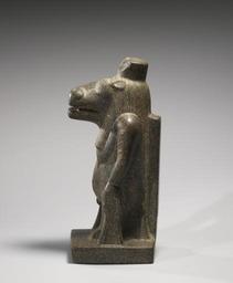 | Keywords: Egyptian - Statue of Taweret - Walters 22223 - Left.jpg Ancient Egyptians believed the goddess Taweret whose name translates as the Great One offered protection to women during pregnancy and childbirth She is represented as a hippopotamus with a swollen belly pendulous human breasts the limbs of a lion and the back and tail of a crocodile Taweret was a benevolent deity and was commonly depicted on amulets Underscoring her function as a protector she holds the hieroglyph sa meaning protection in each hand the cartouches on her shoulders were added at a later date and have so far escaped a definitive reading Although her cult gained great importance she had no temples of her own ca 180 100 BC Greco-Roman red granite cm 53 21 23 accession number 22 223 6873 Dr Eddé Alexandria Egypt Eddé Collection Sale Hôtel Drouot Paris May 31-June 2 1911 no 525 Henry Walters Baltimore date of acquisition unknown by purchase Walters Art Museum 1931 by bequest Acquired by Henry Walters place of origin Xoïs in present-day Egypt Walters Art Museum license Ancient Egyptian statues in the Walters Art Museum Statues of Taweret |