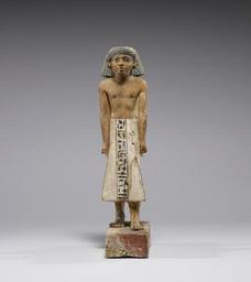 | Keywords: Egyptian - Statue of Tef-ib - Walters 2211.jpg Tombs sometimes contained more than one statue representing the owner The statues were usually inscribed with the owner's name and titles and they served as a focus for funerary rituals These examples belonging to a man named Tef-ib are unusual in that they represent the tomb owner while also bearing inscriptions referring to the four sons of Horus who protected the internal organs of the deceased These deities were also identified with the north south east and west and the statues may have been placed in the tomb in accordance with these directions The differing facial features of these statues including Walters 22 10 22 12 22 13 suggest that they were made by more than one artist Notice as well the sizes of the four figures differ as well as their wigs ca 1980 BC Middle Kingdom carved wood with polychrome paint cm 37 8 9 17 8 accession number 22 11 27426 Dikran Kelekian New York and Paris Henry Walters city Baltimore Walters Art Museum 1931 by bequest Acquired by Henry Walters 1924 place of origin Delta in Egypt Walters Art Museum license Ancient Egyptian statues in the Walters Art Museum Media contributed by the Walters Art Museum needs category review |