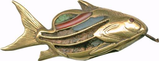 | Keywords: Egyptian - Tilapia Fish - Walters 571072 - Right View A.jpg Tilapia fish were famous amulets The Egyptians believed that this fish was self creative when they observed that it took its eggs or its young offspring were placed in the mouth to protect it from any kind of harm In addition they believed that it could've had a protective function particularly for kids and young women Interestingly the fish is depicted with one red and one green eye The small metal attachment on its mouth was possibly once a part of a lotus flower between 1976 1783 BC Middle Kingdom gold with Egyptian green glazed faience chalcedony turquoise carnelian lapis lazuli and black stone inlay cm 1 75 3 97 1 accession number 57 1072 3522 Henry Walters Baltimore date and mode of acquisition unknown Walters Art Museum Henry Walters Acquired by Henry Walters Jewelry - Ancient to Modern The Walters Art Gallery Baltimore 1979-1980 place of origin Egypt Walters Art Museum license Ancient Egyptian jewellery in the Walters Art Museum Fish in Ancient Egyptian art Media contributed by the Walters Art Museum needs category review |
