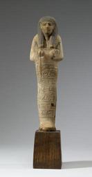 | Keywords: Egyptian - Ushabti of Si-Eset - Walters 22185.jpg This ushabti depicts a mummified figure with arms folded on the chest The figure has long hair painted black a hoe in the right hand and a mattock in the left There is an inscription on the front incised and filled with blue paint between 1250 1150 BC New Kingdom wood with blue and black paint cm 22 7 accession number 22 185 11376 Dikran Kelekian New York and Paris date and mode of acquisition unknown from Upper Egypt Henry Walters city Baltimore Walters Art Museum Henry Walters Acquired by Henry Walters 1914 Translation Overseer of the Marshlands Sa-saty; Inscription Extract from Chapter 6 of the Book of the Dead place of origin Mexico Walters Art Museum license Ushabti in the Walters Art Museum Ushabti of the Egyptian New Kingdom |
