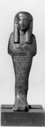 | Keywords: Egyptian - Ushabti - Walters 22195.jpg This carved mummiform figure has long hair striped with yellow Its arms are folded on its breast and it has painted necklaces There is an inscription on the front filled with yellow paint There is no title or name on this piece and it is either a stock figure not used or more likely a forgery as the parts of the formula are mixed up and the hieroglyphics are incorrect The modelling also indicates that this piece is likely a forgery date dark wood with yellow and black paint cm 34 3 accession number 22 195 23168 Dikran Kelekian New York and Paris date and mode of acquistion unknown Henry Walters city Baltimore Walters Art Museum Henry Walters Acquired by Henry Walters 1923 place of origin Western Thebes Egypt Walters Art Museum license Ushabti in the Walters Art Museum |