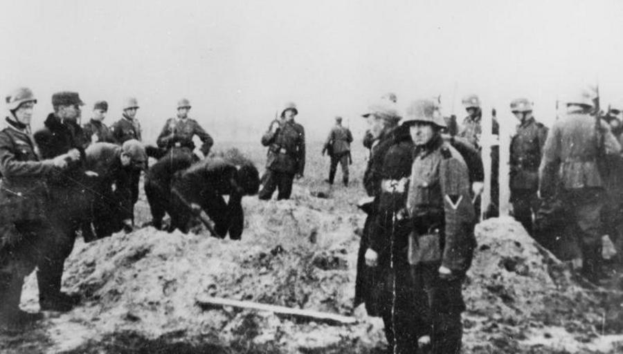 | Keywords: Egzekucja Cyców.jpg pl Egzekucje Polaków przez Niemców podczas II wojny światowej w miejscowości Cyców Narodowe Archiwum Cyfrowe Sygnatura 37-278-5 author 1939 1943 Anonymous-EU Fotografia pochodząca z archiwum fotograficznego Stefana Bałuka Black and white group photographs of men German war crimes in Poland Massacres of World War II Massacres in Poland Cyców |