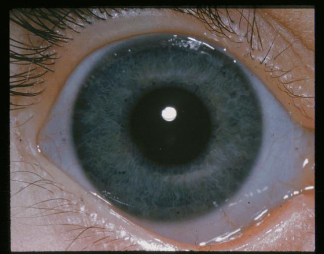 Keywords: Ehlers-danlos.png en The patient was a four-year-old female who was first seen three months before with a two day history of swelling of the upper lid of the left eye and lower lid of the right eye This was apparently due to some skin eruption The patient was also thought to have congenital glaucoma and the sclerae were noted to be blue The corneas also protruded anteriorly and it was thought the patient might possibly have keratoconus The patient was thought to have the syndrome of blue sclerotics with a high myopic astigmatism Incidentally the parents were first cousins Generally the patient had a brachycephaly there was no nystagmus and the heart was normal The patient was thought to possibly have osteogenesis imperfecta She was also thought to have the typical physique of Marfan's but the lenses were not dislocated She had blue sclerae 1 2 and keratoconus and she was -6 00 to -8 00 diopters myopic It appeared that the patient had type VI Ehler's Danlos syndrome on the basis of the blue sclera high myopia and keratoconus Синд ом Эле са-Данлоса девочка четы ех лет Ке атоконус Б ахицефалия Сильная миопия голубая скле а http //cogancollection nei nih gov/dctcCoganImageEnlarge jsp photoNum 62583 photoTitle Case+465+photo+2 2C+clinical+photo+2; http //cogancollection nei nih gov/dctcPickCaseAll jsp case 465 National Eye Institute public domain PD-USGov Blue eyes Close-ups of human eyes Ehlers-Danlos syndrome Iris eye Keratoconus Original upload log wikitable - - 2008-06-10 14 57 21 708 × 556 279319 bytes Filip em <nowiki> en The patient was a four-year-old female who was first seen three months before with a two day history of swelling of the upper lid of the left eye and lower lid of the right eye This was apparently due to some skin erupti</nowiki> |