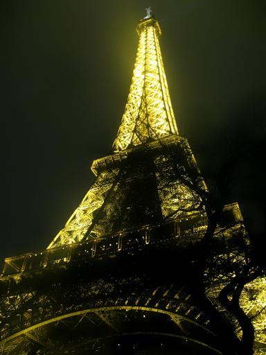 Keywords: eiffel tower paris france landmark famous night evening lights lighting sky clouds outside city cities urban architecture trees
