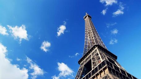 Keywords: eiffel tower paris monument symbol structure sky blue clouds cityscape landmark architecture city famous iron tall metal tourist attraction park romance france europe