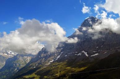 Keywords: eiger north face panorama alpine switzerland mountains landscape clouds hike mountain meadow alm alp mountain landscape sky mountain range