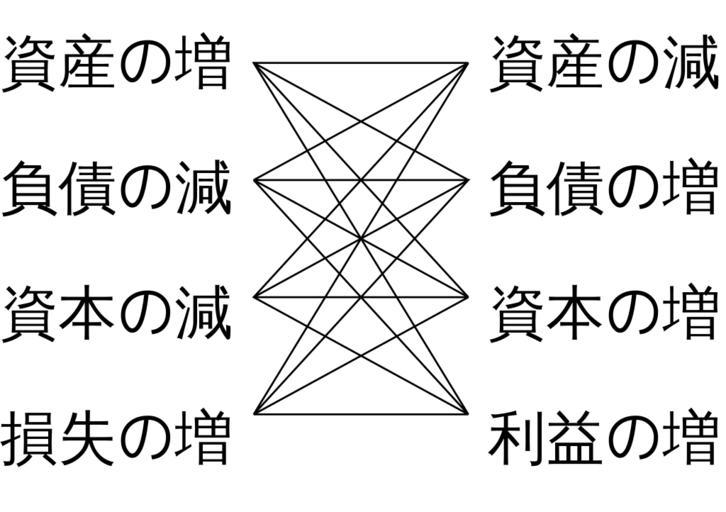 Keywords: Eight elements of transaction (bookkeeping).svg ja 簿記における取引の八要素 1942 http //kindai da ndl go jp/info ndljp/pid/1068208/21 吉田良三 PD-Japan Uploaded with UploadWizard Diagrams in Japanese Economic diagrams 1940s diagrams Entity-relationship models |