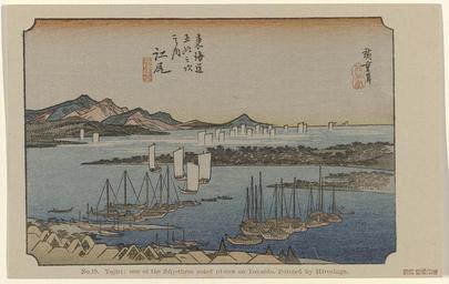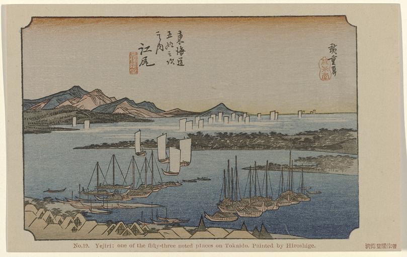 | Keywords: Eijiri-Rijksmuseum RP-P-2010-310-95-19.jpeg accession number RP-P-2010-310-95-19 Utagawa died 1858; Fujisawa Bunjirô Fujisawa BunjirôHiroshige I credit line nl De haven bij de uitmonding van de Okitsu rivier met in de verte zeilbootjes Label Line mentioned on object Hiroshige I Utagawa 1797 - 1858 1906 kleurenhoutsnede; lijnblok in zwart met kleurblokken Collection prenten; Japan collectie kaart Height mm 90 kaart Width mm 141 exhibition history cardboard object history Acquisition 2009-10-13 object type PD-US PD-old Data and photography rights All data and all images made available through the API are either in the public domain or are subject to a CC0 license https //www rijksmuseum nl/en/api/terms-and-conditions-of-use cc-zero place of creation Japan http //www rijksmuseum nl/collectie/RP-P-2010-310-95-19 http //hdl handle net/10934/RM0001 COLLECT 490388 handle Eijiri Uploaded with GWToolset Rijksmuseum RP-P-2010-310-95-19 http //www rijksmuseum nl/media/assets/RP-P-2010-310-95-19 Images uploaded by Fæ Japanese 20th-century prints in the Rijksmuseum Amsterdam Images from the Rijksmuseum |