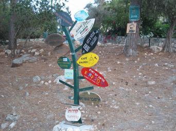 Keywords: Ein Hod Arrows.jpg Arrow signs at the entrance to Ein Hod Israel Own 2007-08-17 Use the force Fingerposts in Israel