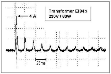 MAKE A MEME View Large Image Einsch trafo.jpg en inrush current of a transformer 230V AC / 60W asymmetric DC-containing pulses over several mains frequency periods de Einschaltstromverlauf bei einen Transformator 230V/60W asymmetrische Impulse mit Gleichstromanteil ...