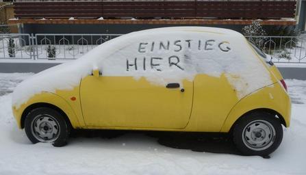 Keywords: Einstieg hier.JPG en Car in winter own Immanuel Giel 2010-02 Ford Ka Ludwigshafen-Maudach Snowed-in automobiles in Germany