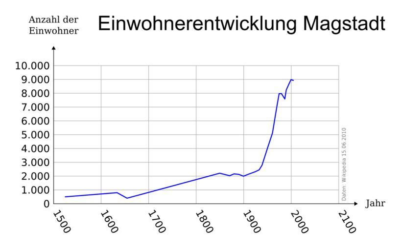 Keywords: Einwohner Magstadt.svg Magstadt Germany Magstadt own Soeren Gasch 2010-06-15 Temporal population graphs of Baden-Württemberg Population diagrams in German Unidentified graphs line charts Created with Inkscape