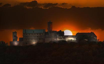 Keywords: eisenach germany europe thuringia germany wartburg castle evening night sun setting