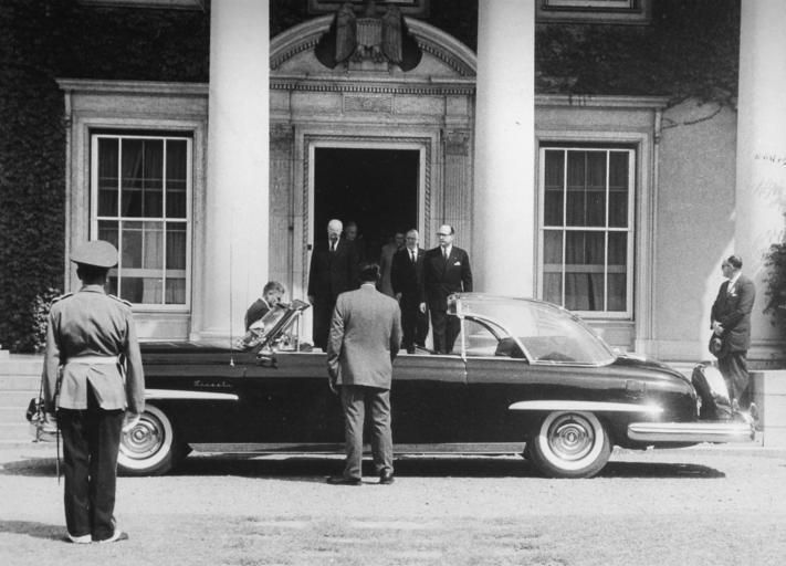 | Keywords: uruguay 1960 eisenhower blackandwhite monochrome black and white Visita del presidente Dwight D. Eisenhower, 2-3 de marzo de 1960. Fotografiado aquí saliendo de la residencia oficial del embajador de los EE.UU. en Montevideo junto al embajador Robert F. Woodward. President Dwight D. Eisenhower's goodwill visit to Uruguay, March 2-3, 1960. Pictured above emerging from the official U.S. Ambassador's residence in Montevideo with Ambassador Robert F. Woodward. [U.S. Embassy photo by Francisco Bonfiglio] Visita del presidente Dwight D. Eisenhower, 2-3 de marzo de 1960. Fotografiado aquí saliendo de la residencia oficial del embajador de los EE.UU. en Montevideo junto al embajador Robert F. Woodward. President Dwight D. Eisenhower's goodwill visit to Uruguay, March 2-3, 1960. Pictured above emerging from the official U.S. Ambassador's residence in Montevideo with Ambassador Robert F. Woodward. [U.S. Embassy photo by Francisco Bonfiglio] |