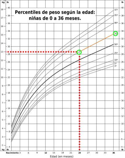 | Keywords: Ejemplo de uso de una tabla de percentiles.svg en Weight-for-age Percentils Girls birth to 36 months de Perzentilenkurve für das Gewicht bezogen auf das Alter für Mädchen von der Geburt bis zum Alter von 36 Monaten es Uso de la tabla de percentiles Percentiles_peso_bebes_niñas svg 2009-04-02 19 50 UTC Percentiles_peso_bebes_niñas svg Weight-for-age-girls svg derivative work FischX <span class signature-talk >talk</span> Weight-for-age-girls jpg National Center for Health Statistic 2000 derivative work Tartaglia <span class signature-talk >talk</span> derivative work Tartaglia <span class signature-talk >talk</span> Ejemplo de uso de una tabla de percentiles png Se resaltan algunos valores para mostrar su uso Tartaglia Percentiles_peso_bebes_niñas svg PD-USGov PD-USGov-HHS-CDC original upload log This image is a derivative work of the following images File Percentiles_peso_bebes_niñas svg licensed with PD-USGov PD-USGov-HHS-CDC 2009-04-02T18 11 39Z Tartaglia 632x794 72894 Bytes <nowiki>Corrección de errores</nowiki> 2009-04-02T16 53 00Z Tartaglia 632x794 76141 Bytes <nowiki>Corrección de errores</nowiki> 2009-04-02T16 48 18Z Tartaglia 632x796 76096 Bytes <nowiki> en Weight-for-age Percentils Girls birth to 36 months de Perzentilenkurve für das Gewicht bezogen auf das Alter für Mädchen von der Geburt bis zum Alter von 36 Monaten es Perce</nowiki> Uploaded with derivativeFX Quantiles |