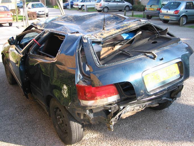 Keywords: Ékrazé.JPG fr Véhicule ayant effectué plusieurs tonneaux Own Julien Bertrand 2006-04-22 Road transport safety Crashed vehicles Suzuki Baleno 1995
