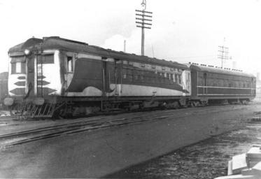 | Keywords: train railway steam railcar railmotor tasmania narrow gauge blackandwhite monochrome railroad vehicle locomotive outdoor black and white Sentinel steam railcar SP8 with a BBL class Clyde car as trailer, circa 1939. TGR photo. Ted Lidster collection Sentinel steam railcar SP8 with a BBL class Clyde car as trailer, circa 1939. TGR photo. Ted Lidster collection |