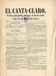 Keywords: El Canta claro.jpg ca Primera pàgina de El Canta claro Exemplar a la Biblioteca Central Xavier Amorós Magenri 1869 PD-old Premsa històrica de Reus Cc-zero