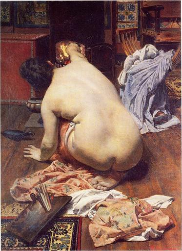 Keywords: El descanso de la modelo..jpg Artwork Creator Antonio Cortina Farinós El descanso de la modelo 1890 oil on canvas 56x42 cm Propiedad del Círculo de Bellas Artes de Madrid Firmado ángulo inferior derecho A Cortina 1890 Círculo de Bellas Artes de Madrid Other versions PD-old-100 1890s paintings Cortina Farinós Antonio Female human backs in art Cortina Farinós Antonio Female buttocks in painting Cortina Farinós Antonio Paintings in Madrid People with fire in art Antonio Cortina Farinós Women facing left in art Paintings of nude sitting females in the 19th century |