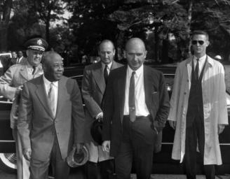 | Keywords: u.s. national archives usnationalarchives jfk presidential library jfkpresidentiallibrary people groupshot blackandwhite monochrome black and white Original Caption: El Ferik Ibrahim Abboud, President of Sudan, Arrives at the White House We are looking for your help in identifying unknown people in our White House Photographs collection. If you have any information about this photograph, please post a comment, including any relevant sources, for the catalogers at the John F. Kennedy Presidential Library. Thank you! Local Identifier: JFKWHP-AR6820-1C Created By: Department of the Interior. National Park Service (II). Region VI, National Capital Region. From: Abbie Rowe White House Photographs, 12/06/1960 - 03/11/1964 Contact: John F. Kennedy Library (LP-JFK), Columbia Point Boston, MA 02125-3398 Phone: 617-514-1600 Fax: 617-514-1652 Email: kennedy.library@nara.gov Production Dates: 10/5/1961 Scope and Content Note: In this photograph El Ferik Ibrahim Abboud, President of Sudan, arrives at the White House. In front (L – R): President Abboud; Special Assistant to the President Dave Powers. In back (L – R): Unidentified man; Chief of Protocol Angier Biddle Duke; unidentified Secret Service Agent. West Wing Entrance, White House, Washington, D.C. Persistent URL: JFK Library URL: www.jfklibrary.org/Asset-Viewer/Archives/JFKWHP-AR6820-1C... Access Restrictions: Unrestricted Use Restrictions: Unrestricted Original Caption: El Ferik Ibrahim Abboud, President of Sudan, Arrives at the White House We are looking for your help in identifying unknown people in our White House Photographs collection. If you have any information about this photograph, please post a comment, including any relevant sources, for the catalogers at the John F. Kennedy Presidential Library. Thank you! Local Identifier: JFKWHP-AR6820-1C Created By: Department of the Interior. National Park Service (II). Region VI, National Capital Region. From: Abbie Rowe White House Photographs, 12/06/1960 - 03/11/1964 Contact: John F. Kennedy Library (LP-JFK), Columbia Point Boston, MA 02125-3398 Phone: 617-514-1600 Fax: 617-514-1652 Email: kennedy.library@nara.gov Production Dates: 10/5/1961 Scope and Content Note: In this photograph El Ferik Ibrahim Abboud, President of Sudan, arrives at the White House. In front (L – R): President Abboud; Special Assistant to the President Dave Powers. In back (L – R): Unidentified man; Chief of Protocol Angier Biddle Duke; unidentified Secret Service Agent. West Wing Entrance, White House, Washington, D.C. Persistent URL: JFK Library URL: www.jfklibrary.org/Asset-Viewer/Archives/JFKWHP-AR6820-1C... Access Restrictions: Unrestricted Use Restrictions: Unrestricted |